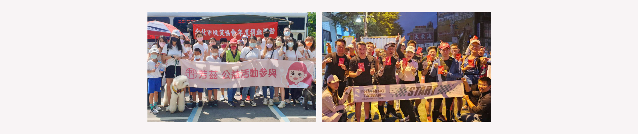 定期參與捐血活動、參訪育幼院,贊助台北幸安國小羽球隊及中國文化大學棒球隊,與台灣待用課程協會合作,義賣商品幫助偏鄉孩童擁有更多學習機會,更與「勵馨基金會」攜手號召,透過活動幫助更多需要的婦女及孩子。