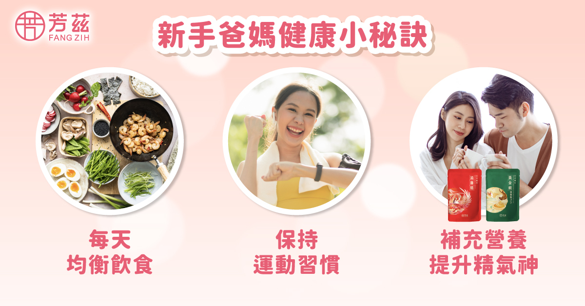 作為新手爸媽,沒有人一開始就是完美的父母,而是通過不斷的學習和嘗試才能變得出色,這在過程中必定會消耗許多精力,記得每天均衡飲食、保持運動習慣,並隨時補充保健營養品,推薦新手媽媽喝芳茲滴雞精,補充蛋白質、總支鏈胺基酸與膠原蛋白,新手爸爸喝芳茲黃金蜆滴雞精,補充肝醣、鋅、牛磺酸,陪伴您在忙碌的育兒生活中提升精氣神,守護全家人健康。
