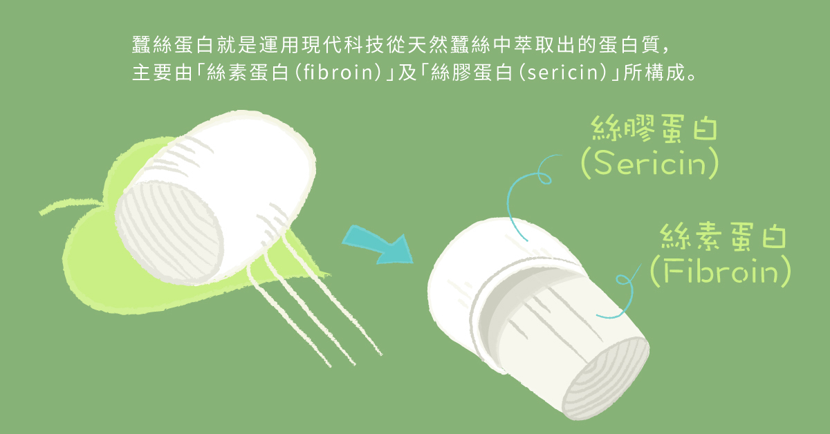 絲膠蛋白(sericin)分布在蠶絲的外層,屬球形蛋白,由18種胺基酸組成,是女性保養重要的成分之一。更神奇的是,絲膠蛋白有著和膠原蛋白相同的功效,但是分子卻遠比膠原蛋白更小,這項發現使「蠶絲蛋白」一躍登上美容保養寶座!