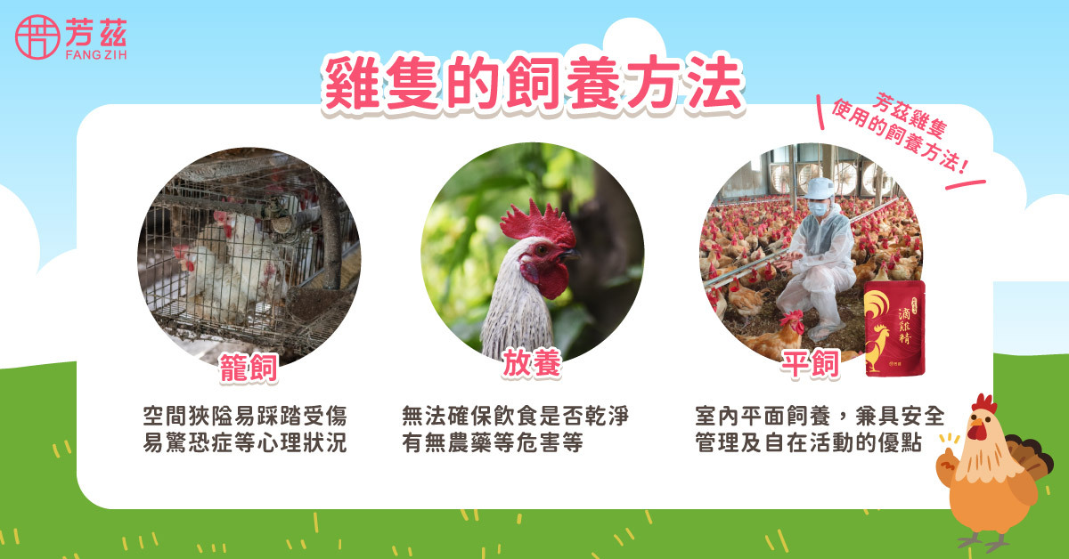 然而現今雞隻的飼養不再只需要注重以上三種方式,更要注重飼養雞隻對於環境以及消費者的影響。