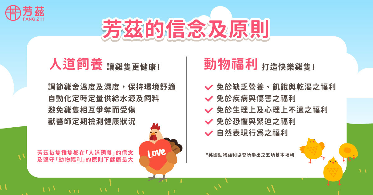 芳茲相信這樣健康快樂成長的雞隻,才能給予消費者健康純淨的營養,因此日月養生滴雞的每隻雞隻都在「人道飼養」的信念及堅守「動物福利」的原則下健康長大的喔!