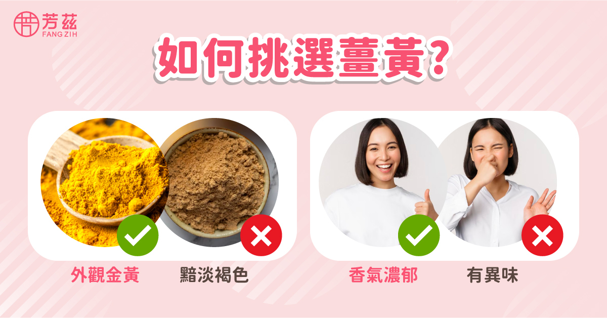 選擇呈現鮮豔黃色的薑黃,避免選購呈現褐色的薑黃,因為顏色黯淡的薑黃代表它已經存放過久了。