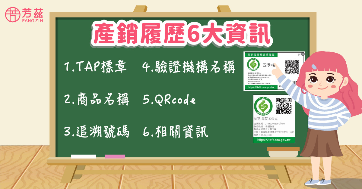 通過檢驗後就可以獲得「產銷履歷農產品標章」(簡稱TAP標章),而且在商品包裝上要明確標示以下6大資訊: