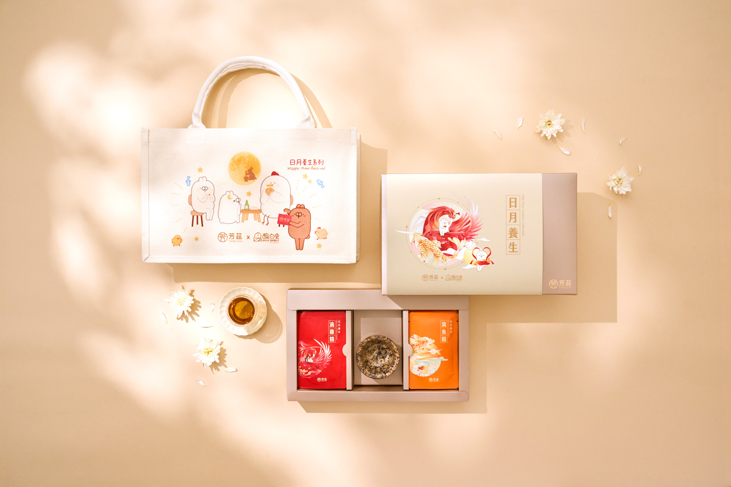 當您受邀到朋友家共度中秋時光,不免俗的一定也會攜帶伴手禮聊表心意,今年中秋超夯LINE貼圖「醜白兔」變身嫦娥奔月,聯名芳茲打造最萌中秋禮盒補充滿滿正能量!如同醜白兔與好久不見的朋友們相聚在一起,把握難得的中秋佳節,若剛好朋友家中有長輩一起參與,送上醜白兔中秋聯名禮盒不僅風趣可愛,更有著滿滿的健康,內含芳茲滴雞精、芳茲滴魚精,零脂肪、零膽固醇、低鈉的的健康養生飲品,為他們的健康照顧一下。