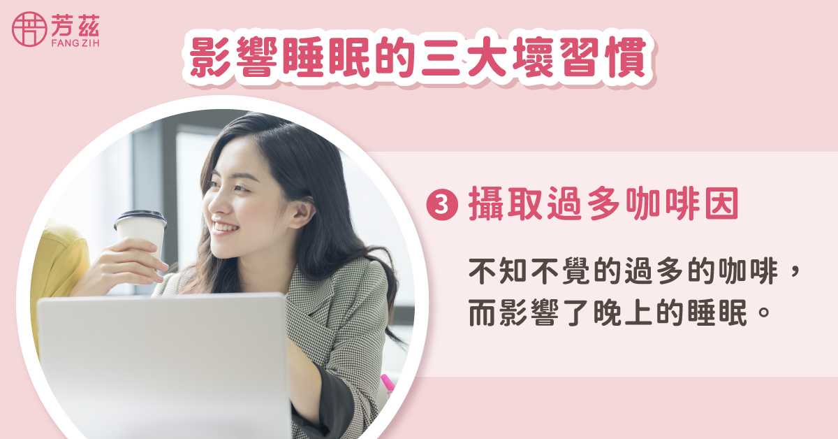 可能因為工作因素需要喝杯咖啡或茶來提神,從每天早上一杯,到了下午可能也需要來一杯,不知不覺的過多的咖啡,而影響了晚上的睡眠。