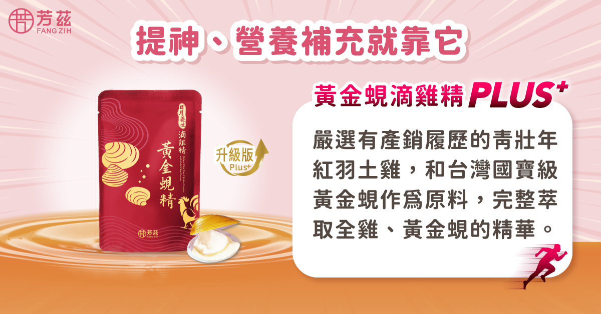 「日月養生黃金蜆滴雞精」,嚴選有產銷履歷的青壯年紅羽土雞,和台灣國寶級黃金蜆作為原料,完整萃取全雞、黃金蜆的精華,並保有天然肝醣、礦物質鋅、鐵和牛磺酸的成份,除了可以提振精神以外,還能幫助增強體力、調整體質與維持健康,加上零脂肪含量、膽固醇、小分子蛋白質,更能幫助身體補充營養,非常適合日以繼夜、加班應酬的上班族。