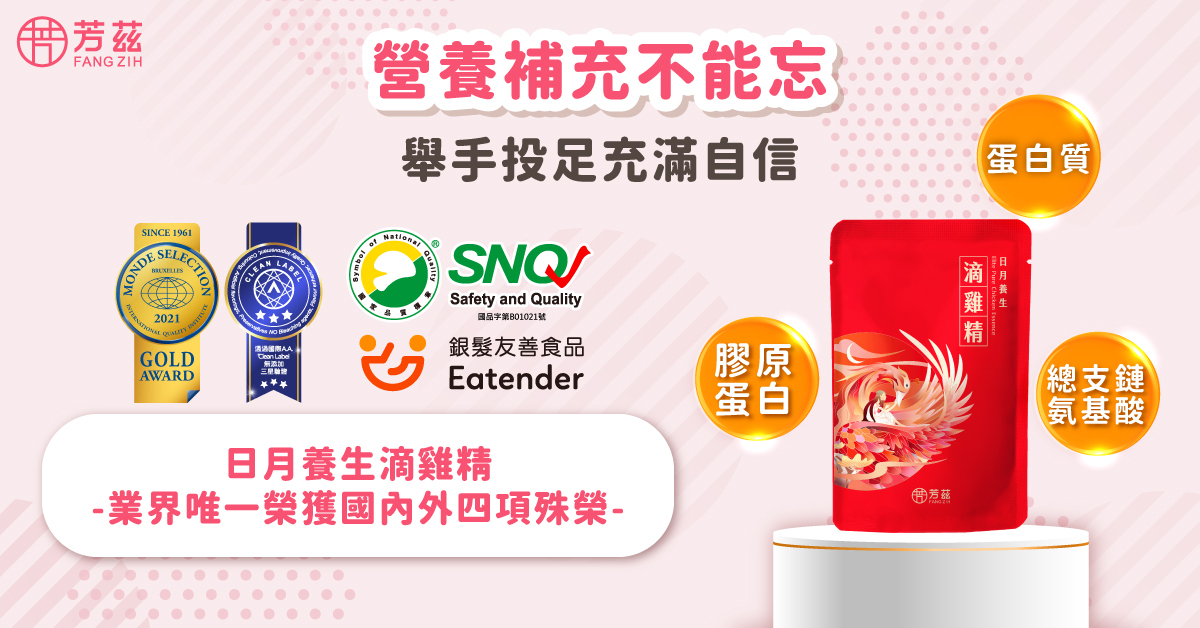 另外也千萬不要忘記從事運動後,要記得多補充蛋白質、蔬菜、碳水化合物、水份,如果這時手邊剛好能備個方便攜帶的營養補充品就很好,像是日月養生滴雞精,榮獲 SNQ 國家品質標章、國際 A.A.無添加三星驗證、Monde selection 金賞與銀髮友善標章等四項國內外殊榮,也通過國內SGS驗證。滴雞精除了要挑選有安心認證的之外,另一個重要的是營養成分,芳茲滴雞精透過蒸氣不回流技術,將全雞的營養精華滴滴裝袋,蛋白質、總支鏈胺基酸與膠原蛋白都能快速補充,輕巧的包裝,攜帶方便,常溫就能飲用,讓運動後的孕媽咪能好好補充元氣。