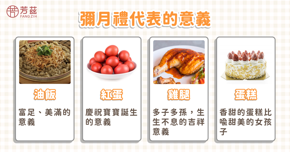 早期醫學並不發達,因此在迎接新生命的到來後,為了慶祝家中寶貝平安健康的邁入新里程碑,就會送親朋好友「彌月禮」。