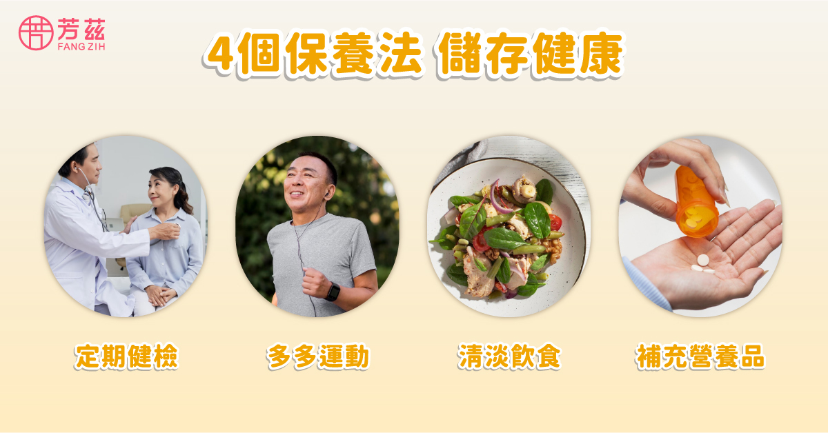 建議大家可以從青壯年時就養成好好照顧身體的習慣,注重飲食的品質、作息正常、保持運動習慣,就可以優雅且從容的邁入熟齡人生囉!