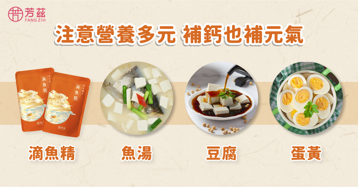 而孕期除了補鈣以外,其它像是維他命D、葉酸、卵磷脂、蛋白質這類營養素也很重要,建議可以多攝取蛋豆魚肉類,在飲食上針對這類需求去做加強,像是魚湯、豆腐、蛋黃都是很好的選擇。