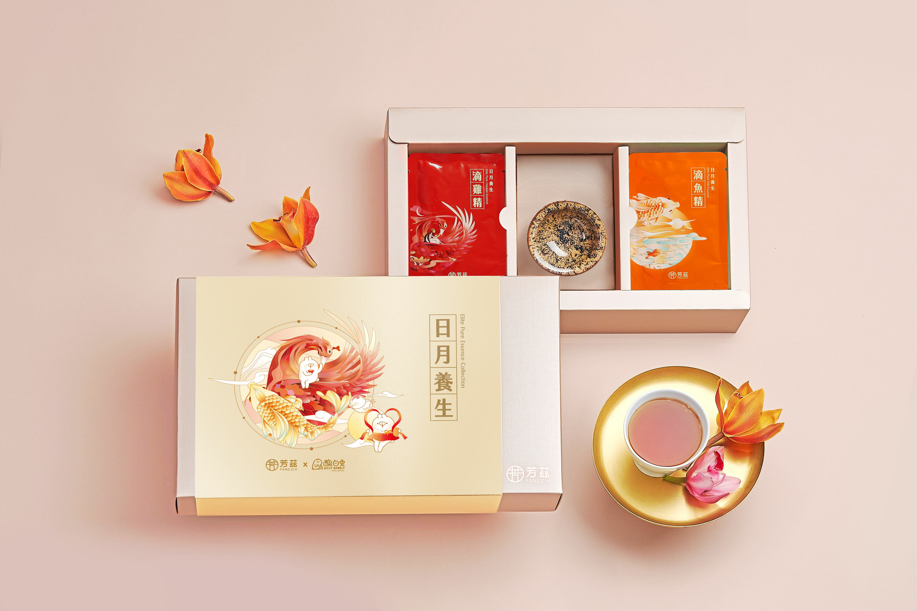 對於剛生產完的閨蜜朋友,今年無法與過往一樣相聚,帶上醜白兔聯名禮盒,讓彼此就像禮盒上的嫦娥『美白兔』和充滿好奇心的太空人『大白雞』,一起跨越數十萬公里的距離奔向月球,探望超久不見的好朋友『醜白兔』。為產後的她送上新鮮滴煉的海陸精華滋補品,營養價值多元,不僅美味可口,補充上也不會造成身體負擔,為產後的朋友提供一份溫暖的助力。