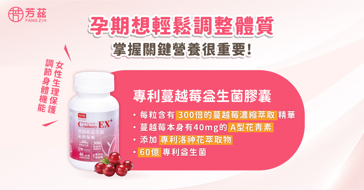 準媽咪們在懷孕期間可能會碰到的轉變與挑戰,以及該如何緩解的方式,在這個重要時期,其實好好照顧自己生活與健康是關鍵。除了每天維持良好的飲食,也可以適時補充專利蔓越莓益生菌膠囊就是不錯的選擇。