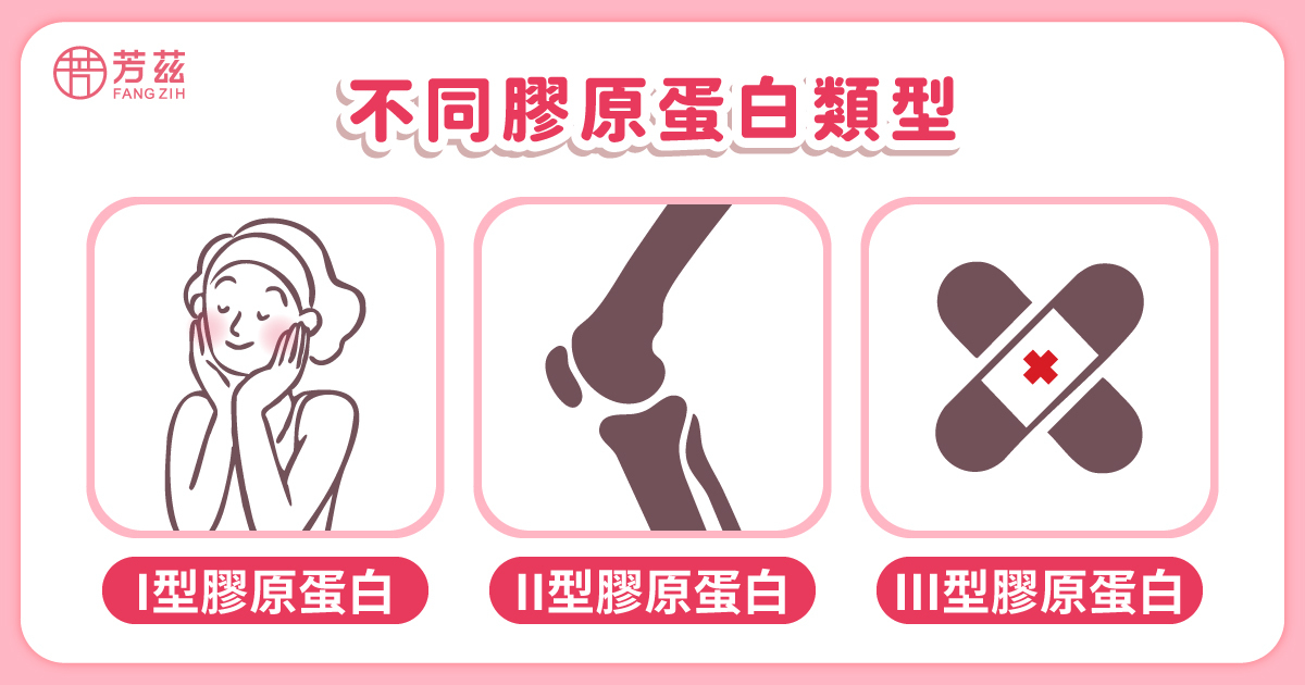根據結構差異,膠原蛋白可分為 29 種型態(資料2),其中以以下三種類型最為常見: