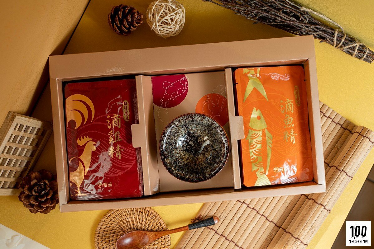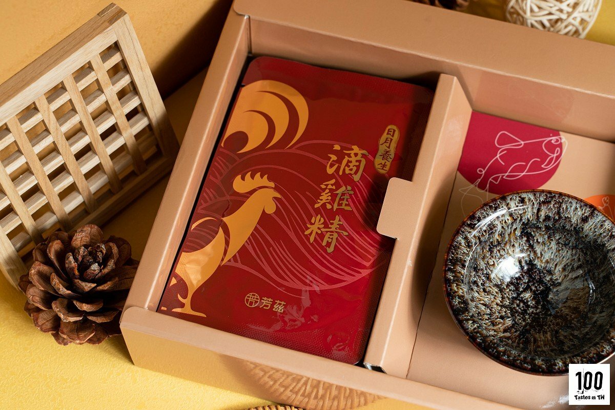 滋補養氣一次到位!芳茲生技推出的日月養生雞魚饗宴禮盒,內含滴雞精、滴魚精,加上饒富質感的天目釉品茗杯相襯,