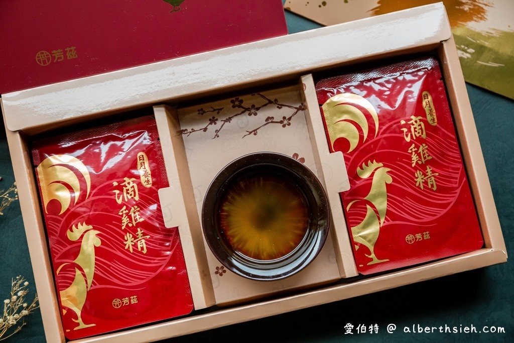 芳茲滴雞精,嚴選產銷履歷飼養90天的青壯年紅羽土雞,使用全雞完整滴煉,並採用「蒸氣不回流」技術,水氣不接觸食材,只有全雞精華(有去除內臟), 完全沒有人工添加物,連一滴水都沒有添加,而且一隻雞只能滴4包滴雞精,0膽固醇,0脂肪低鈉,負擔少,重點是沒有腥味,熱熱喝真的很好喝,讓媽媽們可以溫補調理身體,更有體力照顧寶寶,這真的很重要阿!