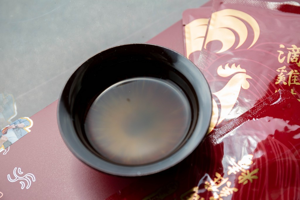 打開包裝就可以聞到香氣十足濃郁的高湯鮮味,喝起來就很像很濃郁的燉雞湯味道,但卻比雞湯清爽順口好喝,也沒有腥味,並帶點回甘,我跟Aries說,這滴雞精很恐怖,喝了這家以後會喝不慣其他家阿!