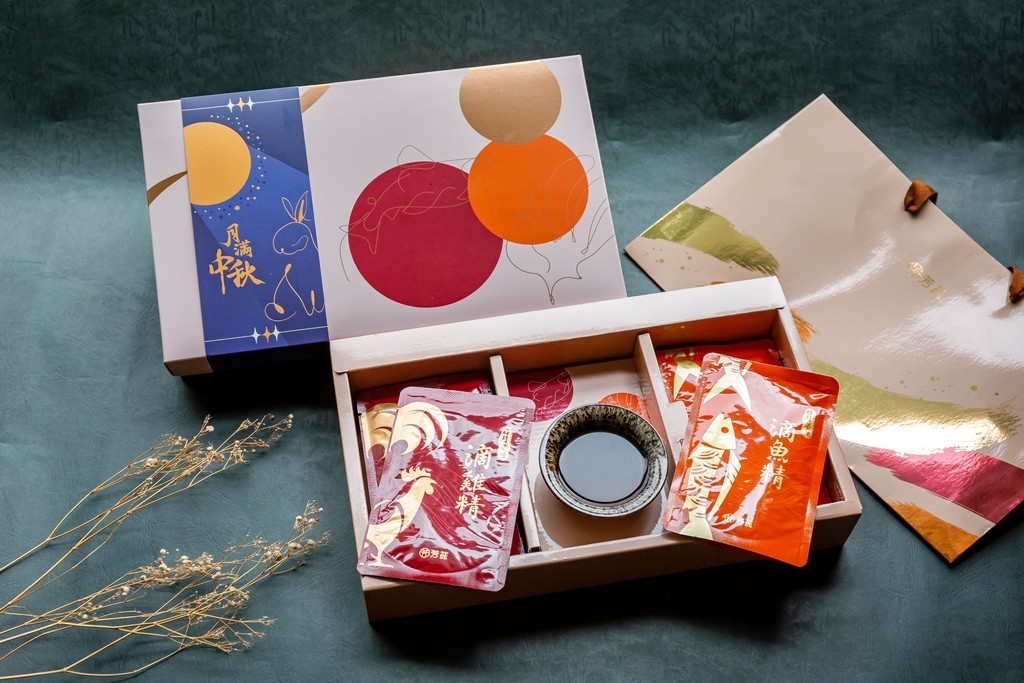 這次中秋節,芳茲生技推出日月養生雞魚饗宴禮盒,中秋限定版,寓意為思念家鄉的”玉兔望月”包裝低調貴氣、精美有質感,禮盒內有滴雞精、滴魚精各五包, 還有精緻的天目釉品茗杯,不論是三節送禮或是客戶送禮,都非常大方又不失禮數喔!