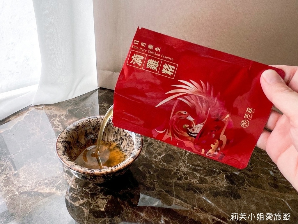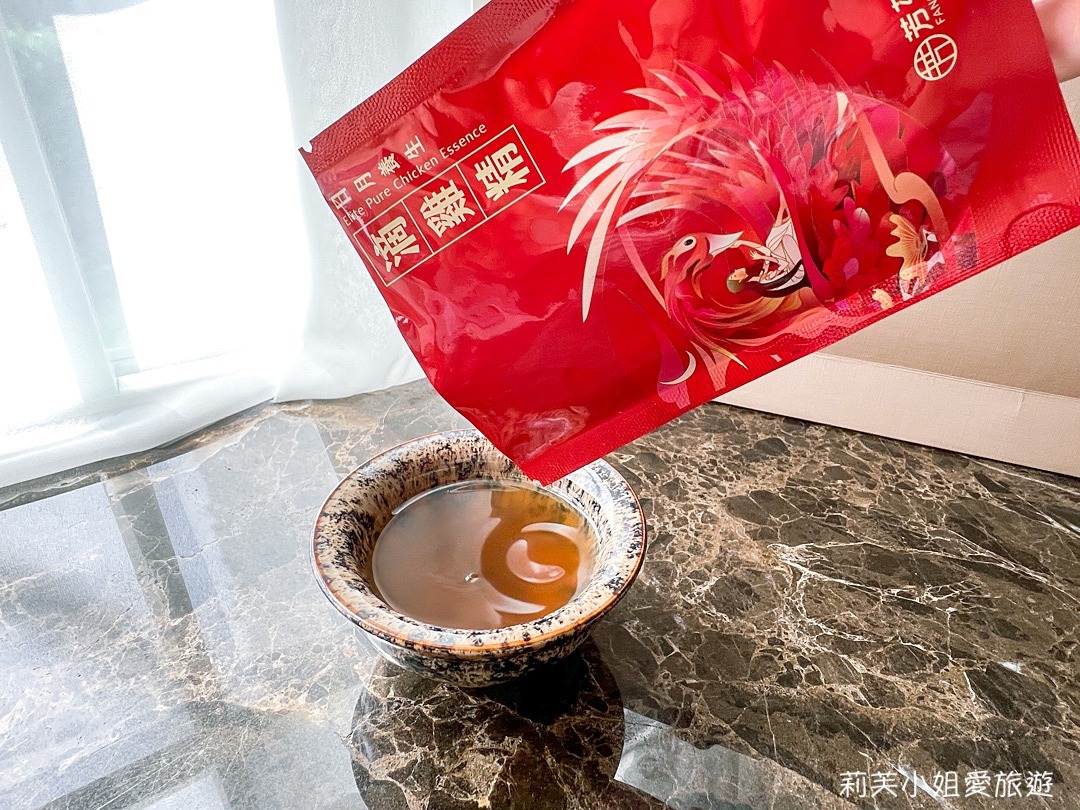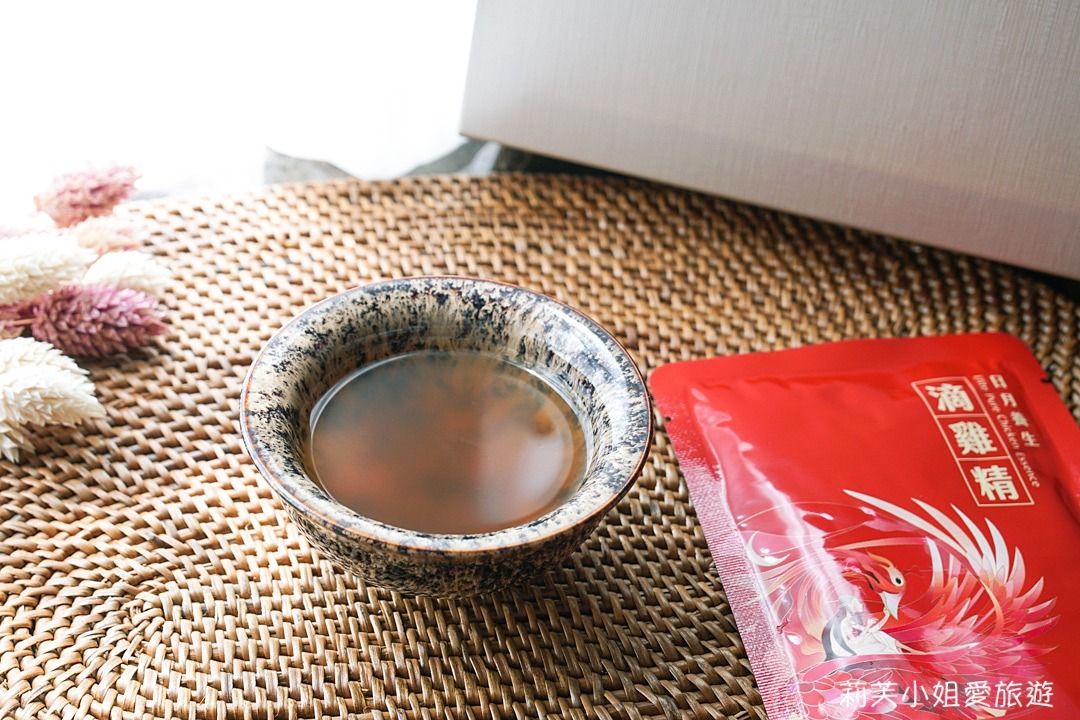 色澤透亮且溫潤的日月養生滴雞精,入口後的口感是柔滑順口又濃郁。