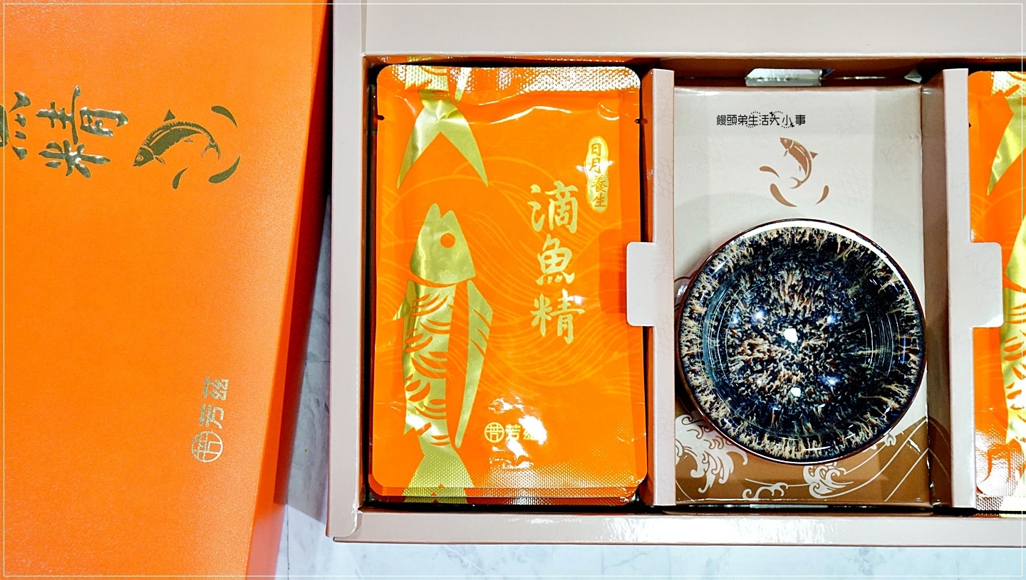 日月養生滴魚精禮盒款,6入滴魚精+天目釉品茗杯,自用或是送禮都很大方!!