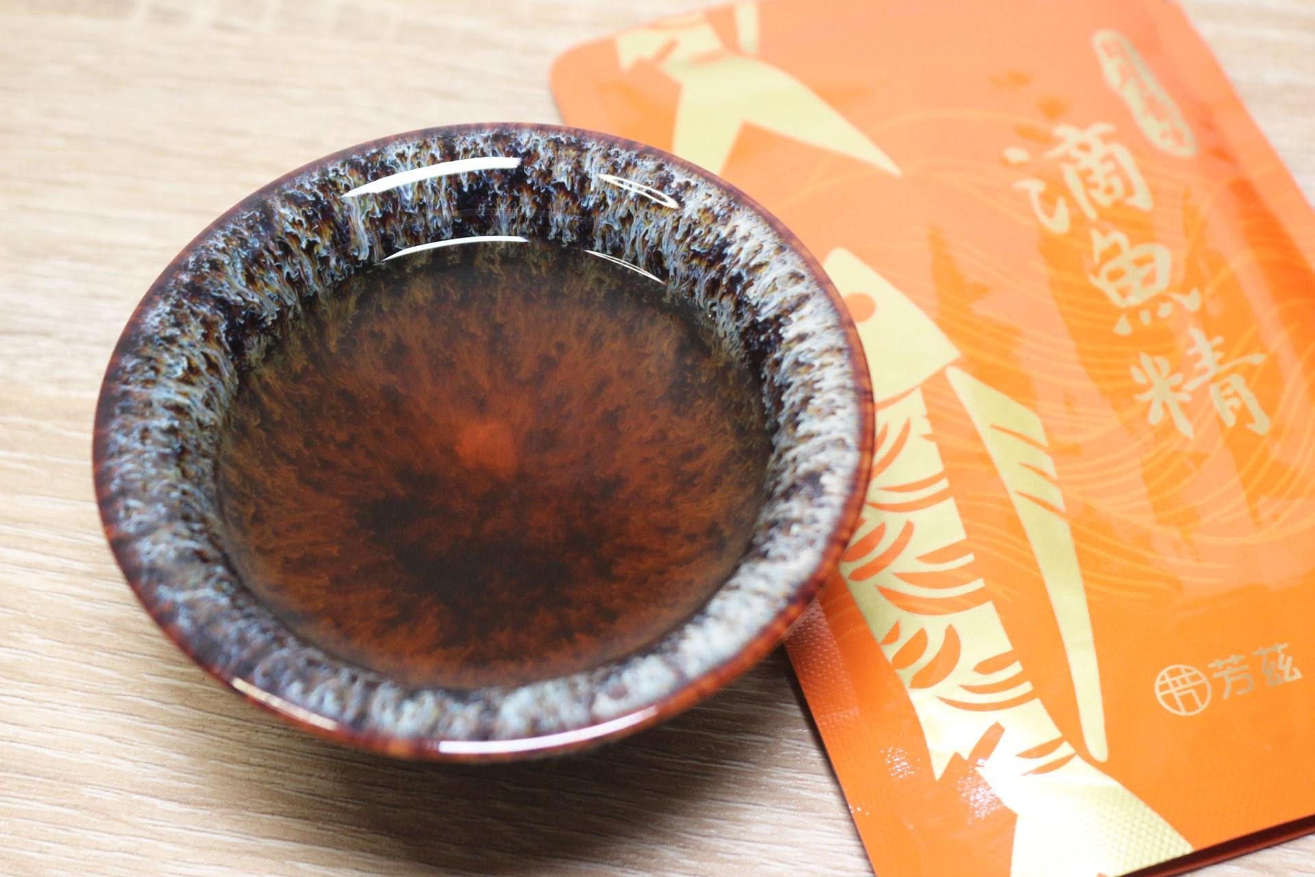 加熱完成,即可倒入碗中,倒入禮盒中附上的天目釉品茗杯更是精美耐看,優雅細緻