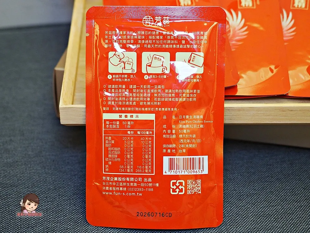 常溫滴雞精【芳茲生技 日月養生滴雞精】,前幾年就在【台灣真善美】節目看過介紹,從雞隻飼養到製作過程,看到嚴謹和用心,上網進一步搜尋了解,發現包裝相當精美有質感,當時我們就訂購送給長輩,自己也有買來喝,長輩喝了之後反應很不錯,覺得好喝順口無腥味,同時又能以簡便的方式補充體力及元氣,從此「芳茲滴雞精」成了我們年節送禮清單的固定選項,是不失禮又實用的好選擇。