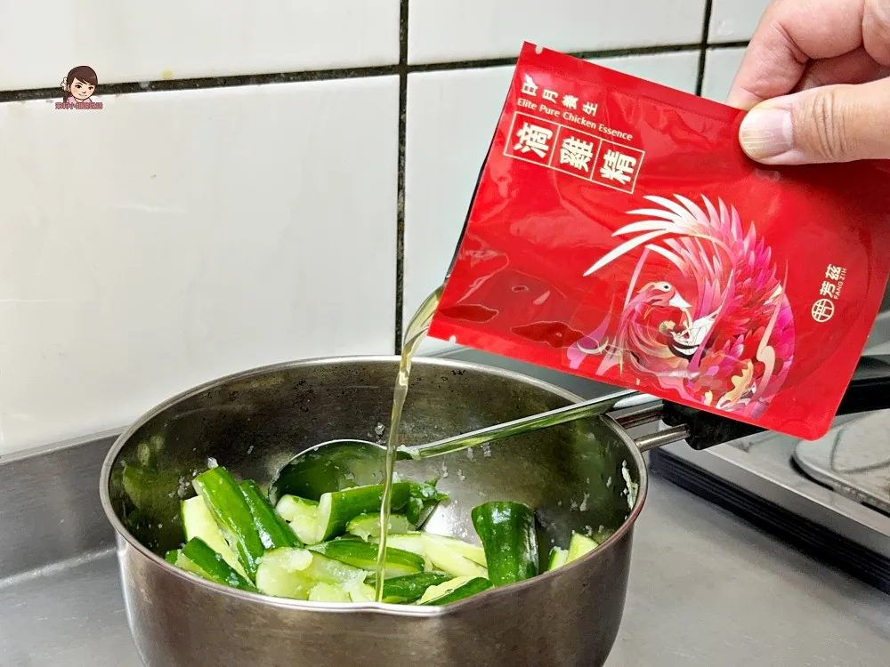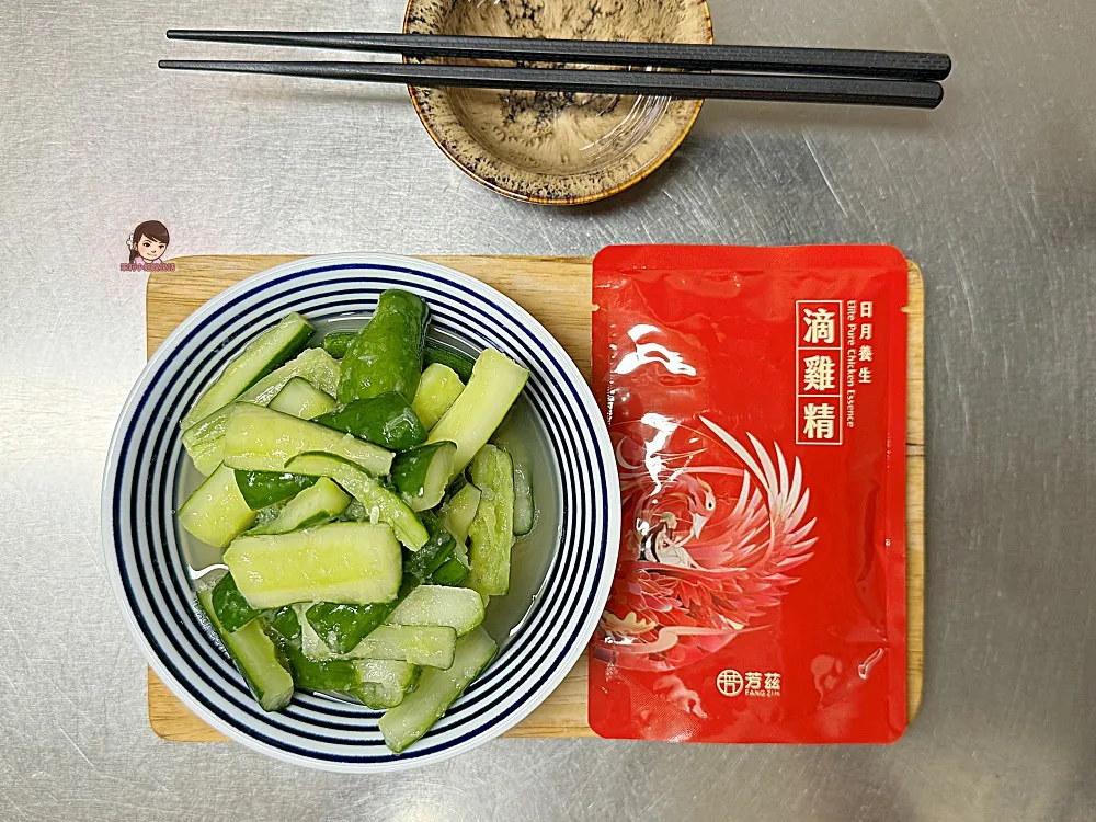 這天做了一道常見的涼拌小黃瓜,因為這道菜不需加熱,把【芳茲滴雞精】加入也等於直接喝滴雞精一樣,小黃瓜還多了一股濃醇甘甜的雞湯風味,另外也很推薦可以用來煮湯、拌麵