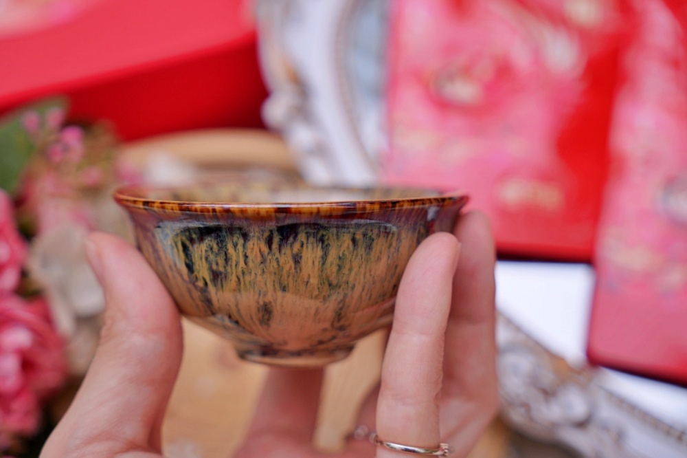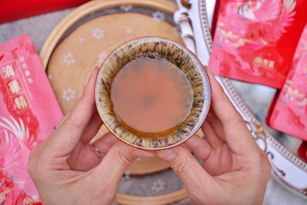 日月養生滴雞精(禮盒款)一盒六包滴雞精,並附贈「天目釉品茗杯」提升整體質感。使用這款超有質感的杯子來喝滴雞精,突然覺得自己好有氣質也優雅(笑)!