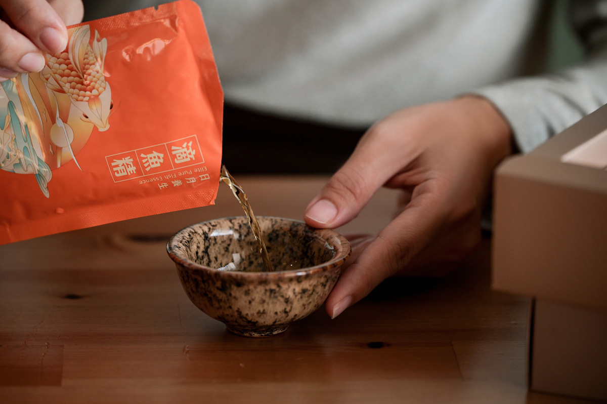 「日月養生滴魚精」,對於需要補充膠原蛋白、蛋白質、牛磺酸、鈣質的媽媽們來說,一包常溫飲用即可補充真的很方便呢。對於長輩維持關鍵行動力,或者身邊朋友產後調理身體、上班族提振精神等來說,也都很適合飲用。禮盒中附贈的匠人獨特手工品茗杯,則是相當適合送禮。