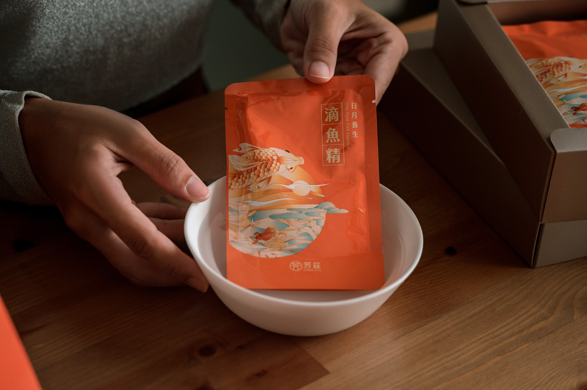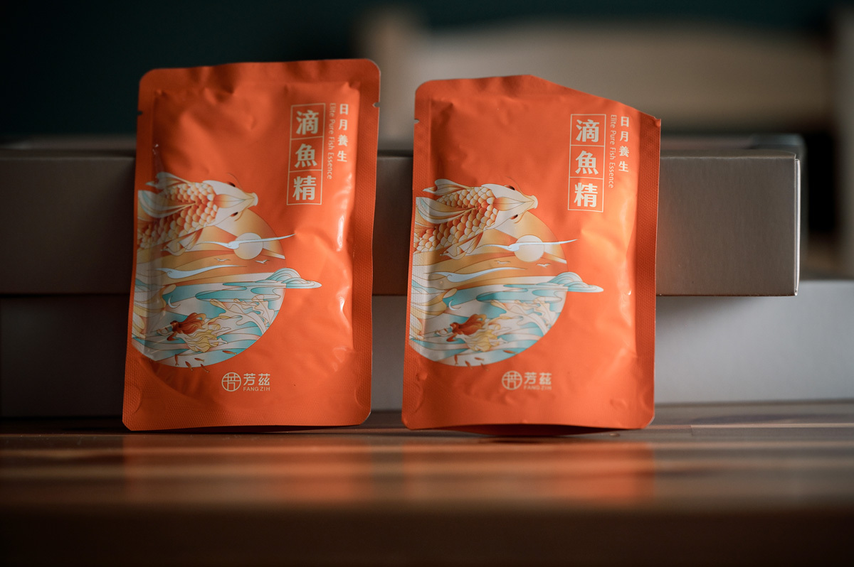 這次分享的芳茲日月養生滴魚精禮盒款,除了有六包滴魚精,還有附贈一個天目釉品茗杯。芳茲滴魚精,新鮮滴煉出貨,且經過高溫高壓滅菌程序,所以產品在未拆封前是無菌狀態,可常溫保存兩年好方便,若是要長期日常補充,可以選擇環保包裝,也不用擔心佔冰箱空間。