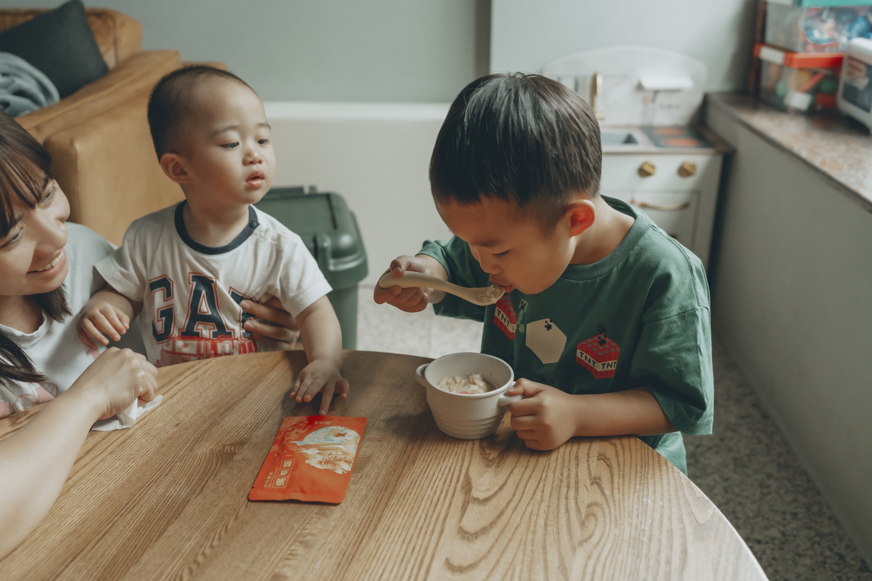 這個習慣一直到弟弟吃寶寶粥都有加