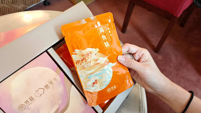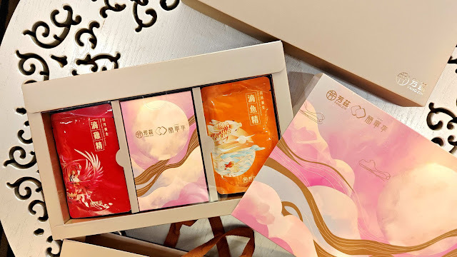 有精美燙金花紋外盒,並附提袋包裝的「滿是喜月禮盒」送禮大方,收禮者也很實用。而且這次的禮盒中除了有滴雞精、滴魚精各5包,還包裝了「簡單李-焦糖奶油夾心餅」,根本老少兼宜的好組合。是今年中秋節送禮給公司客戶、家人、長輩或朋友的首選好禮。