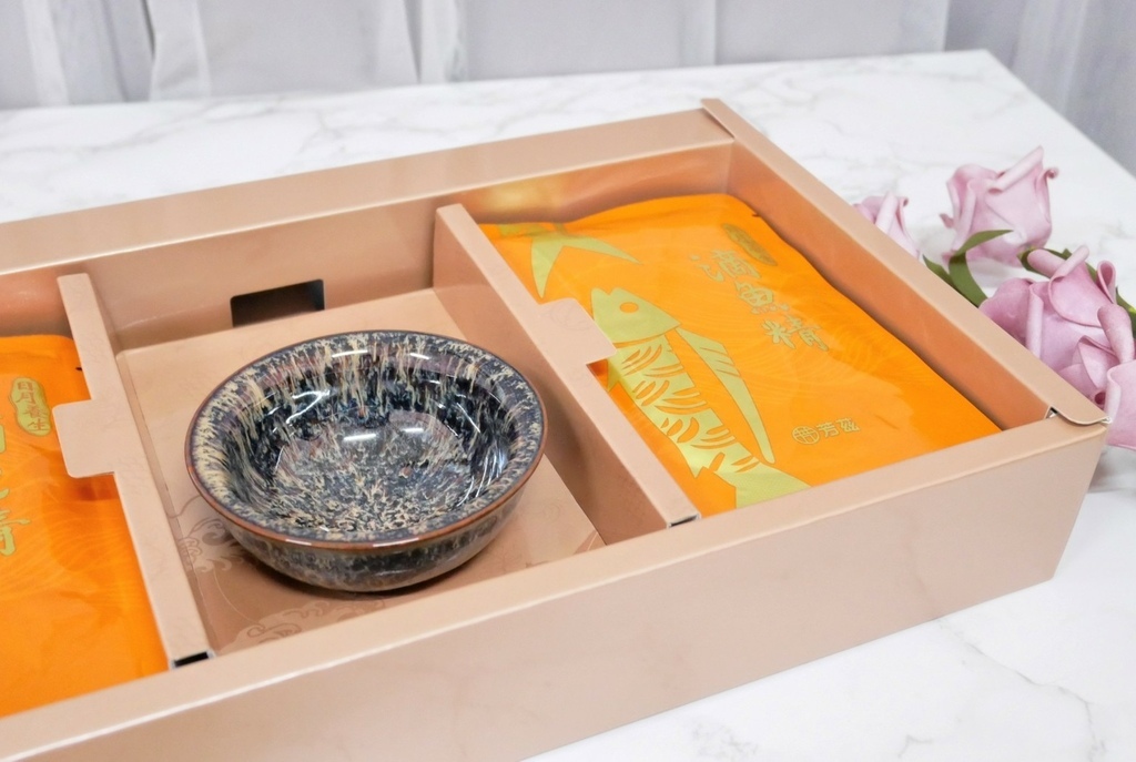 芳茲生技 日月養生滴魚精禮盒款內容有六包滴魚精+一個天目釉品茗杯