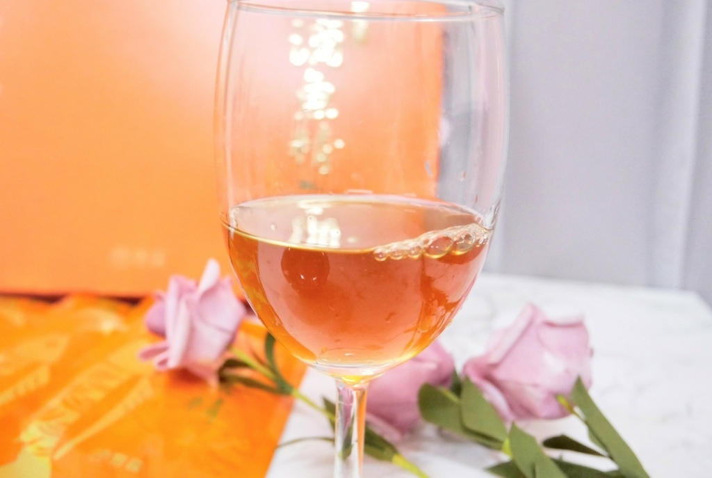嚥下後甘甜會在嘴裡散發開來,並且嘴巴微黏的感覺,因為膠原蛋白還在嘴巴裡
