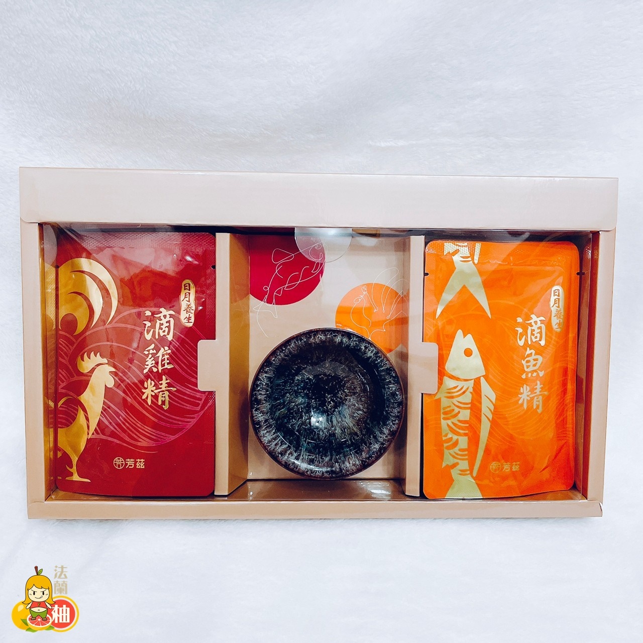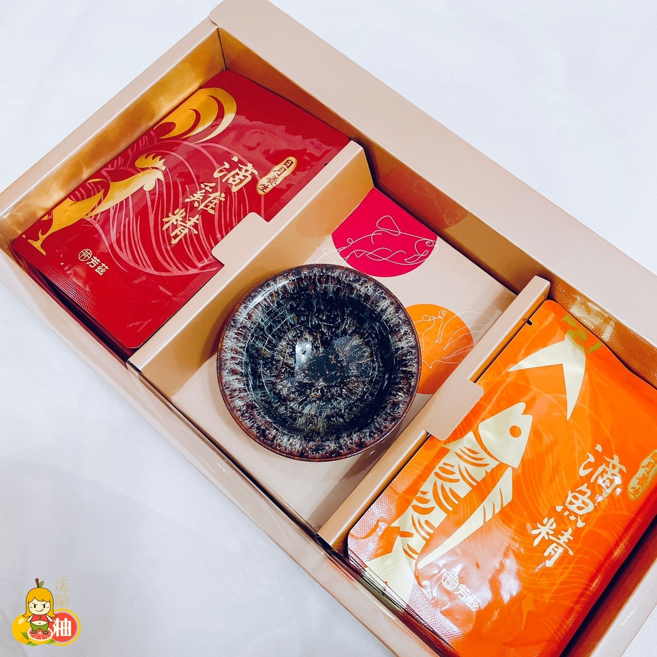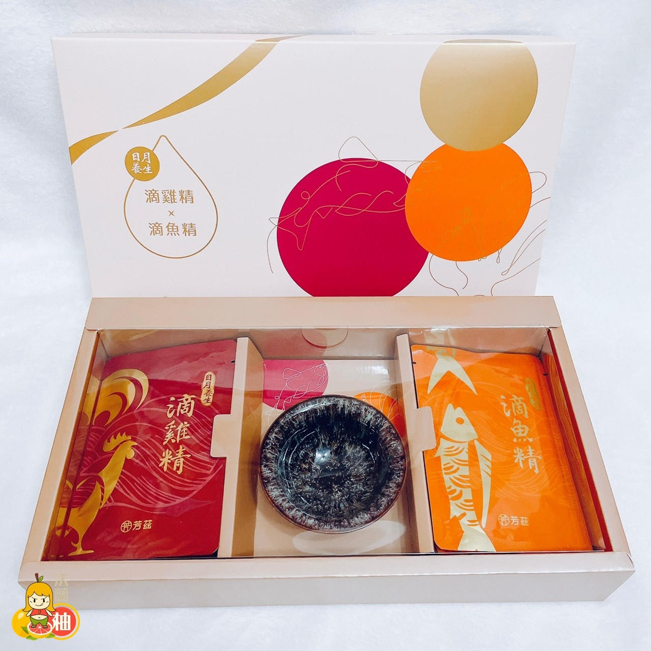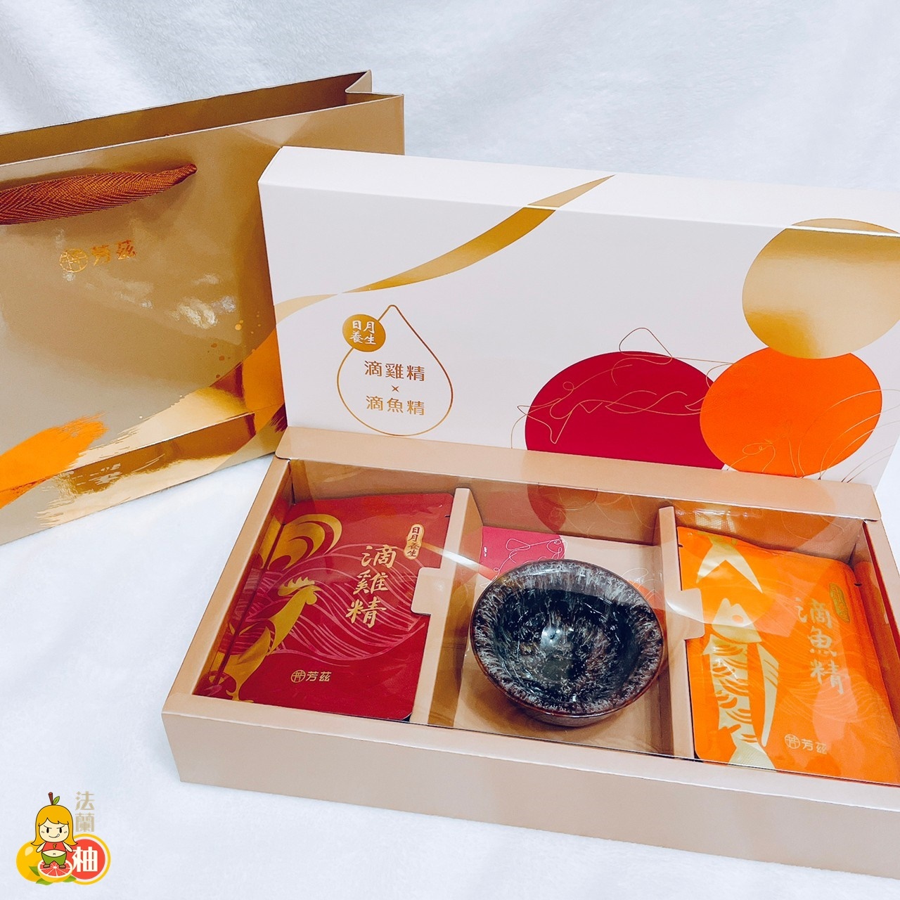 內含5包芳茲滴雞精+5包芳茲滴魚精+天目釉品茗杯*1+專屬提袋