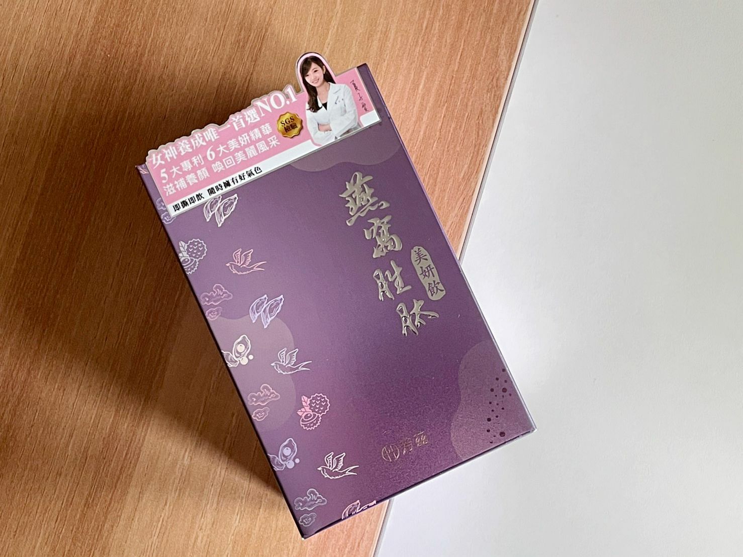 這次分享的是『燕窩胜肽美妍飲(常溫)-彩盒款8包/盒』裡面有八包,採用五大專利技術、六大美顏精華,讓忙碌的女孩兒,也能輕鬆保養!