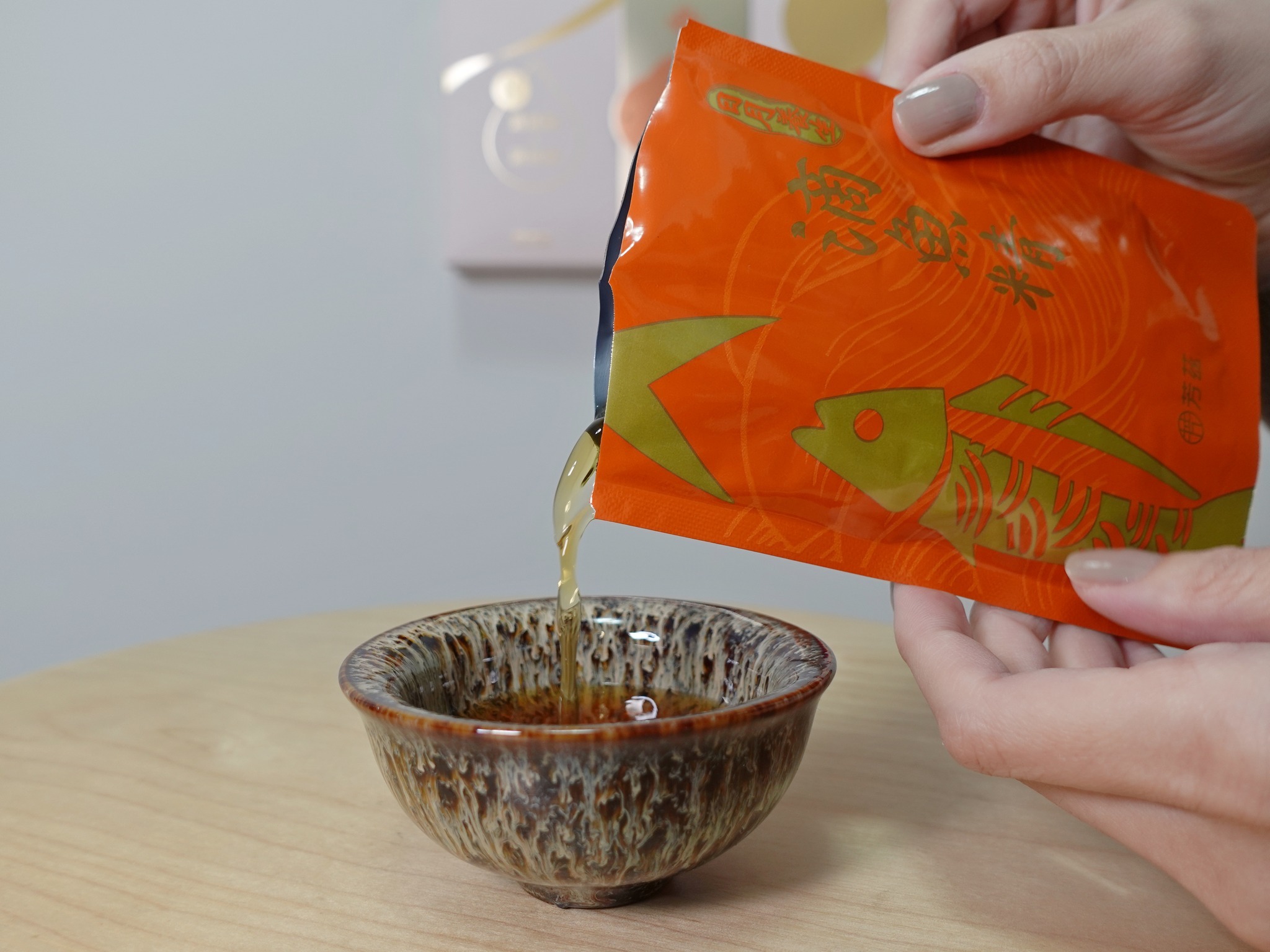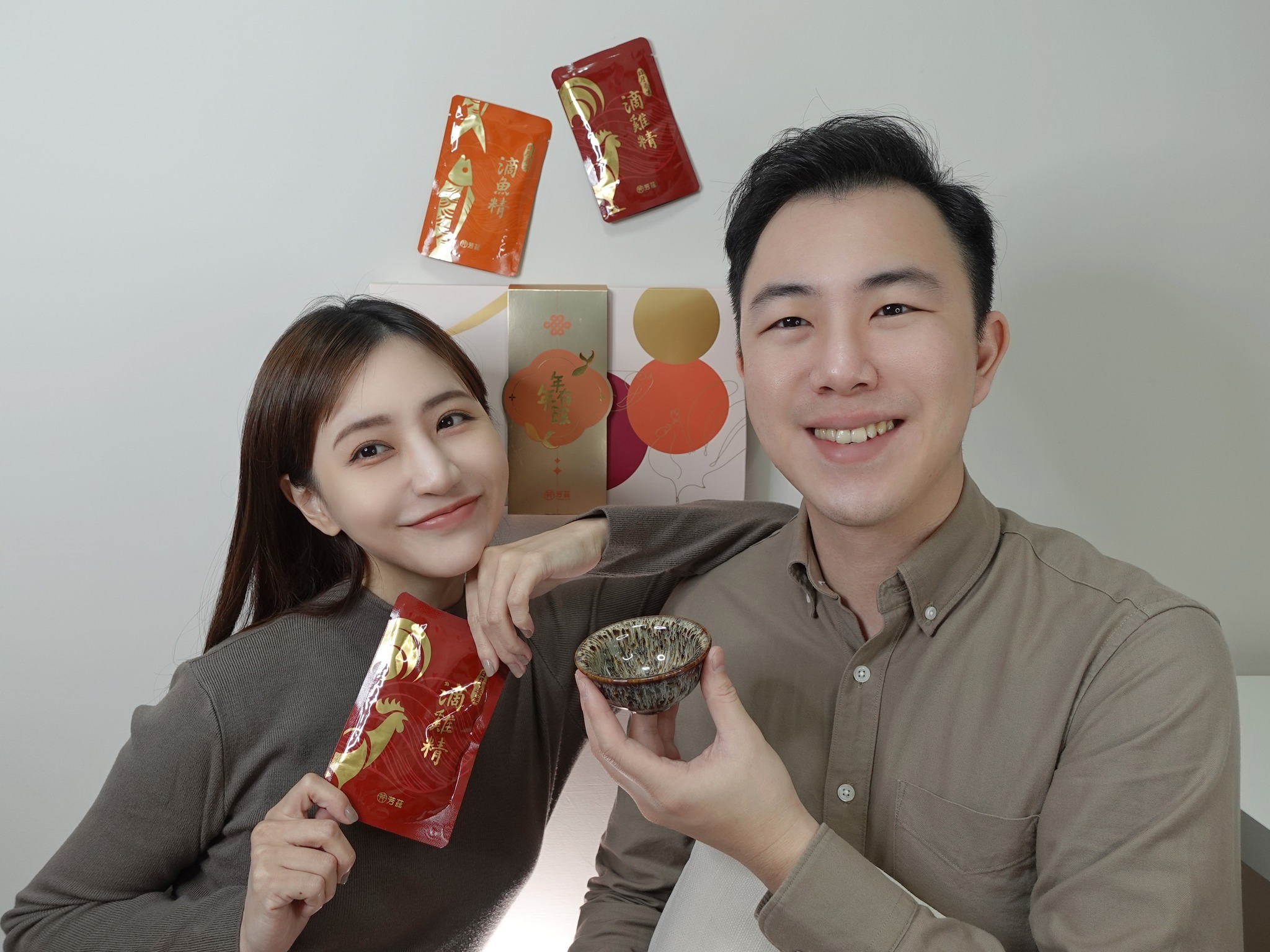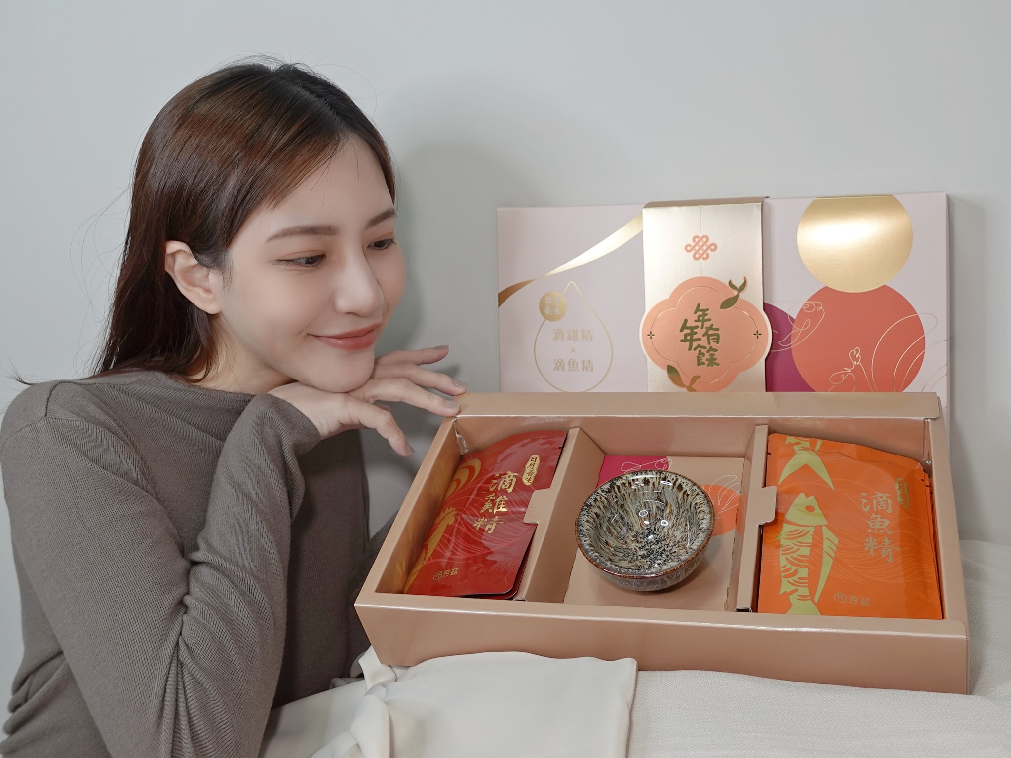 年節將近,芳茲推出日月養生雞魚饗宴新年禮盒,內容物包含5包滴雞精、5包滴魚精,以及超美的天目釉品茗杯一只。