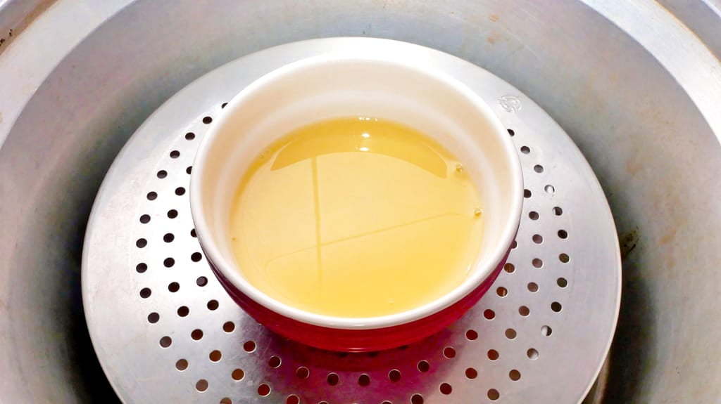 我的蛋液與清水比例是1:1.這比例是我覺得最剛好的(記得將打散蛋液先過篩.口感更綿密)