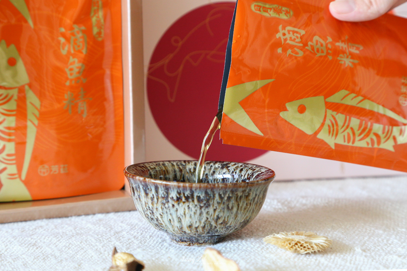 不同於市面上的滴魚精使用鱸魚較多,芳茲的滴魚精是嚴選產銷履歷海水養殖的虱目魚,擁有更豐富的優質蛋白質。以高壓恆溫的萃取技術,鎖住魚的完整營養,裡頭富含膠原蛋白,不管是產前、產後都非常適合。自己在月子中心時,老師也大力推薦每天喝一包滴魚精,對產後的身體非常好,不用每天花時間處理魚湯,一包精華直接搞定。
