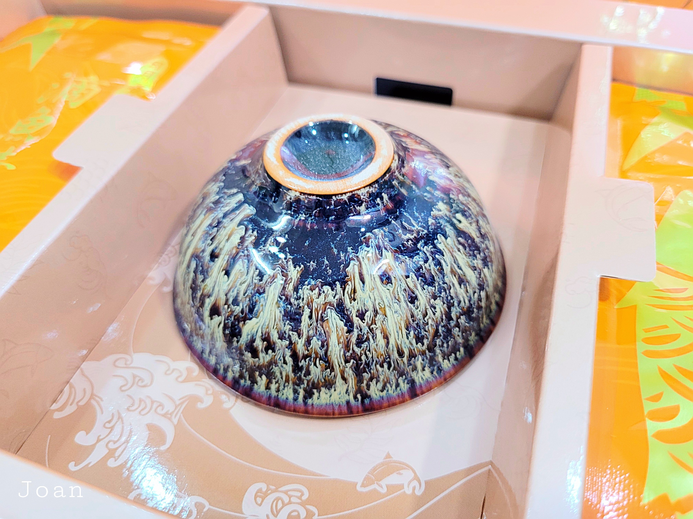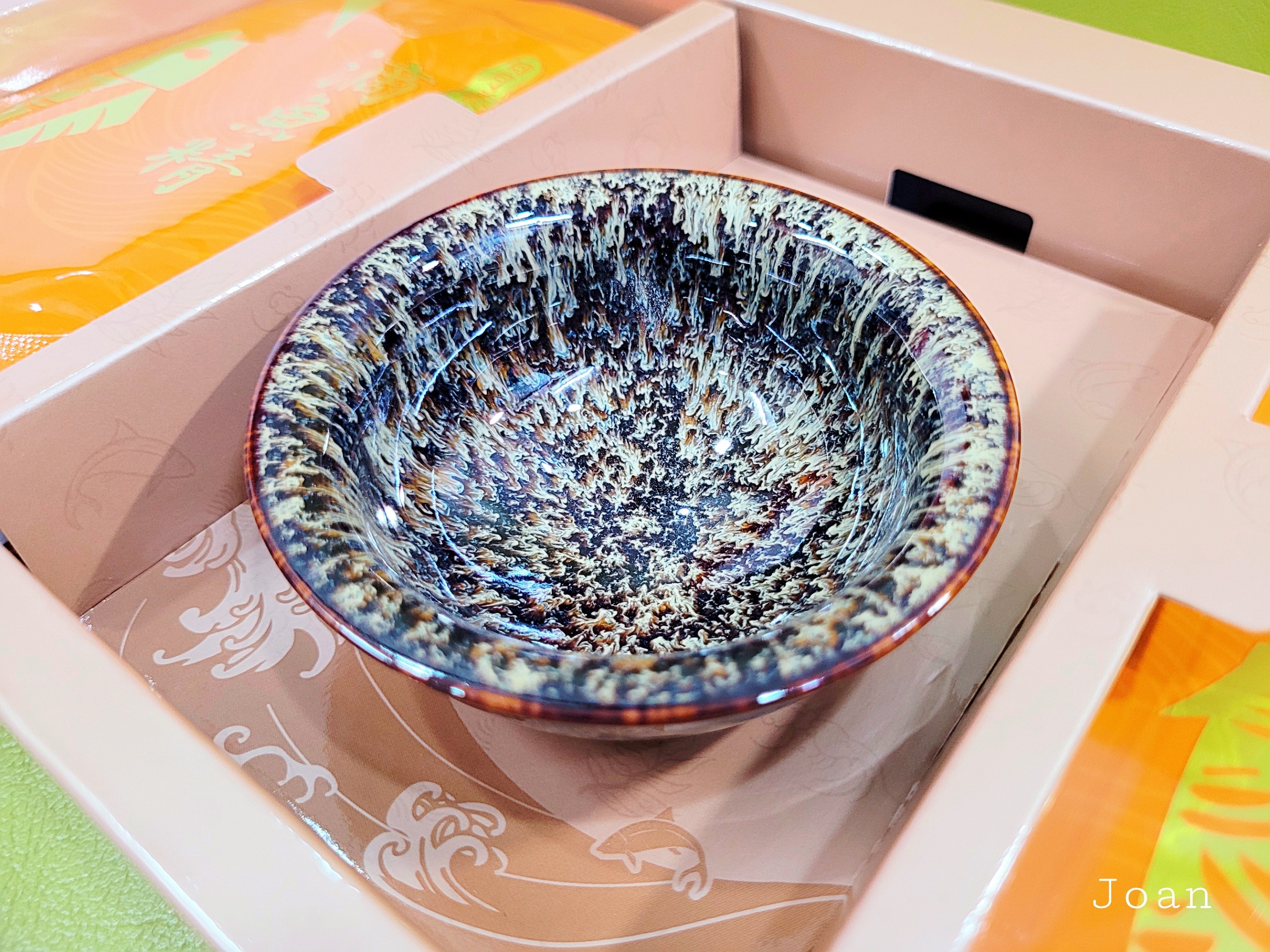 贈送的精緻瓷碗材質是有名的天目釉喔!天目釉的紋理與釉色都相當特別,