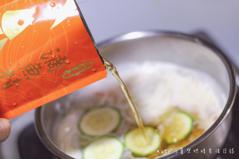 完全不用另外調味,先用適量的開水煮滾麵線及蔬菜,起鍋前倒滴魚精進去拌勻,孩子非常買單