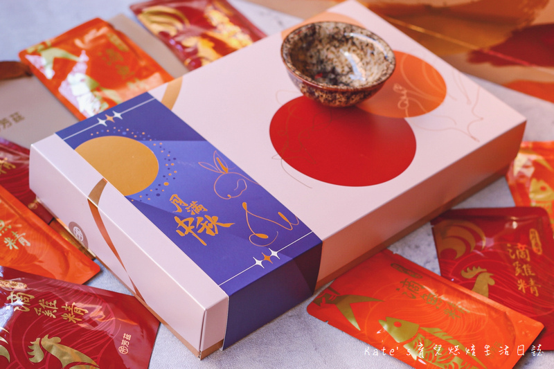 日月養生雞魚饗宴禮盒包裝相當有質感,尤其是這次為中秋設計的"玉兔望月"腰封,多層次的藍底及金色月亮與玉兔,優雅精緻,在中秋送給長輩、主管其實也非常得體