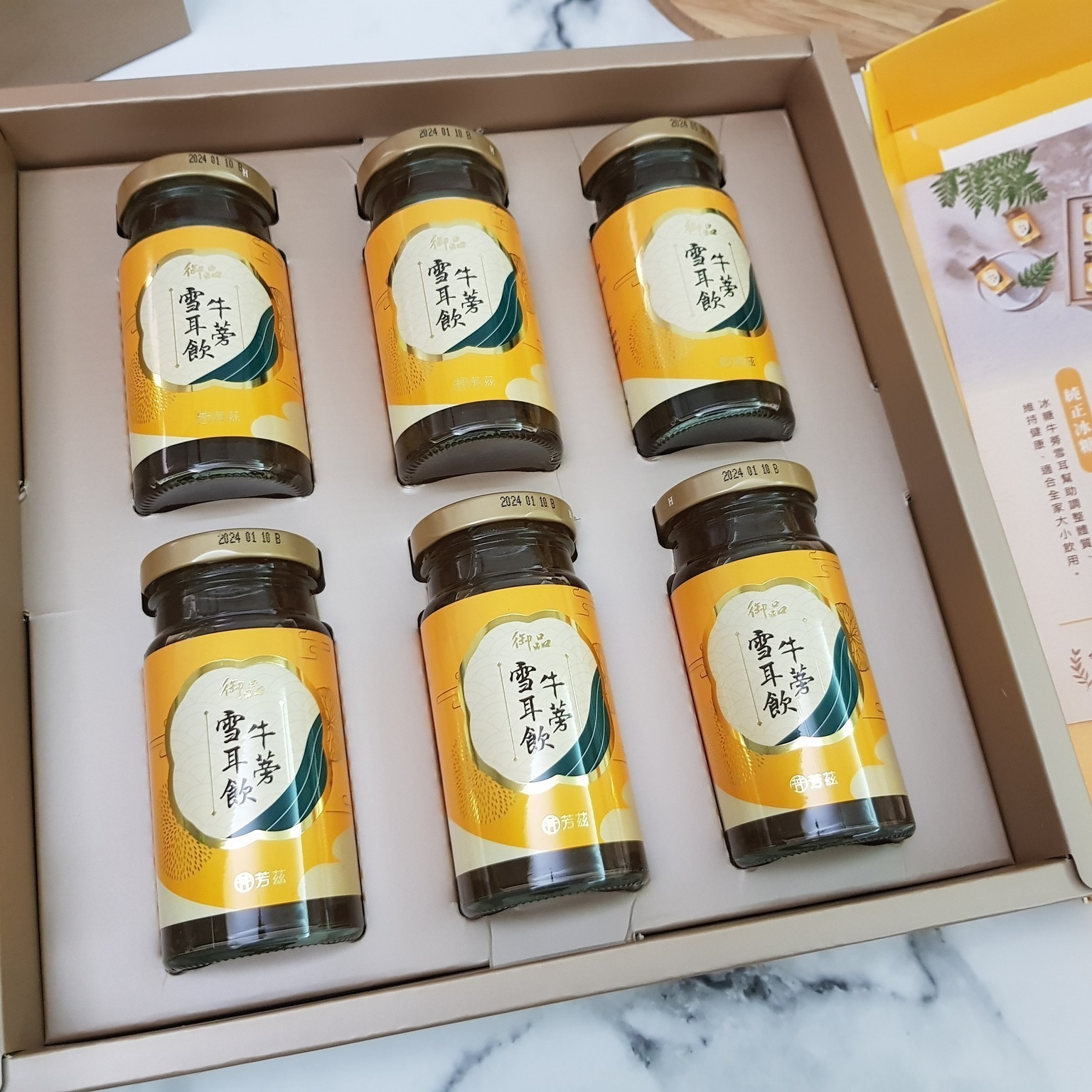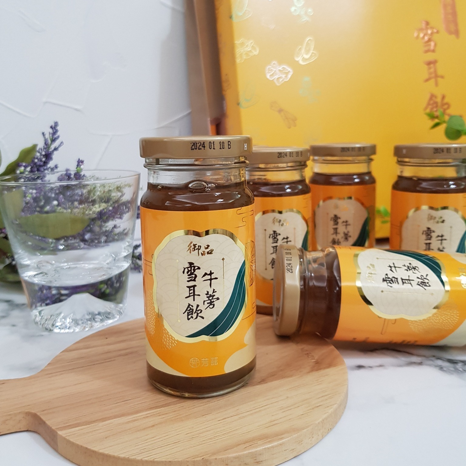 芳茲御品牛蒡雪耳飲原料是嚴選有”素食燕窩”之稱的雪耳再搭配”東洋人蔘”之稱的牛蒡,兩個都是營養的好物,重點在於我們生活中真的很少自己去煮來吃,可以咕嚕咕嚕喝下去就補充優質的植物性膠原蛋白又營養,當然是最好的啦!