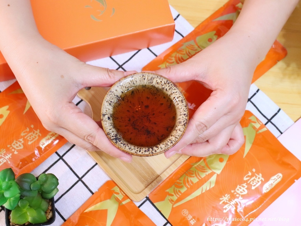 低鈉、零脂肪、零膽固醇,有鈣質、膠原蛋白、牛磺酸、蛋白質,喝起來香醇順口完全沒有魚腥味