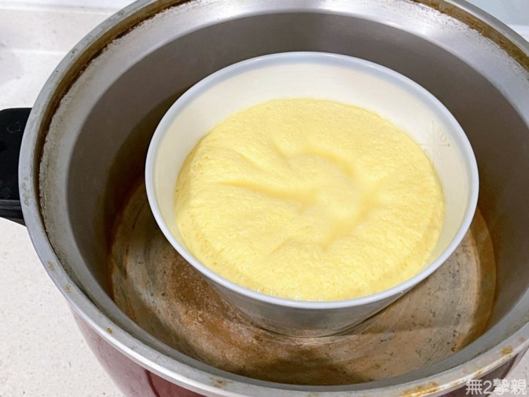 電鍋外鍋內加入一杯水,把蒸蛋放到電鍋,最後記得讓鍋蓋留個隙縫。