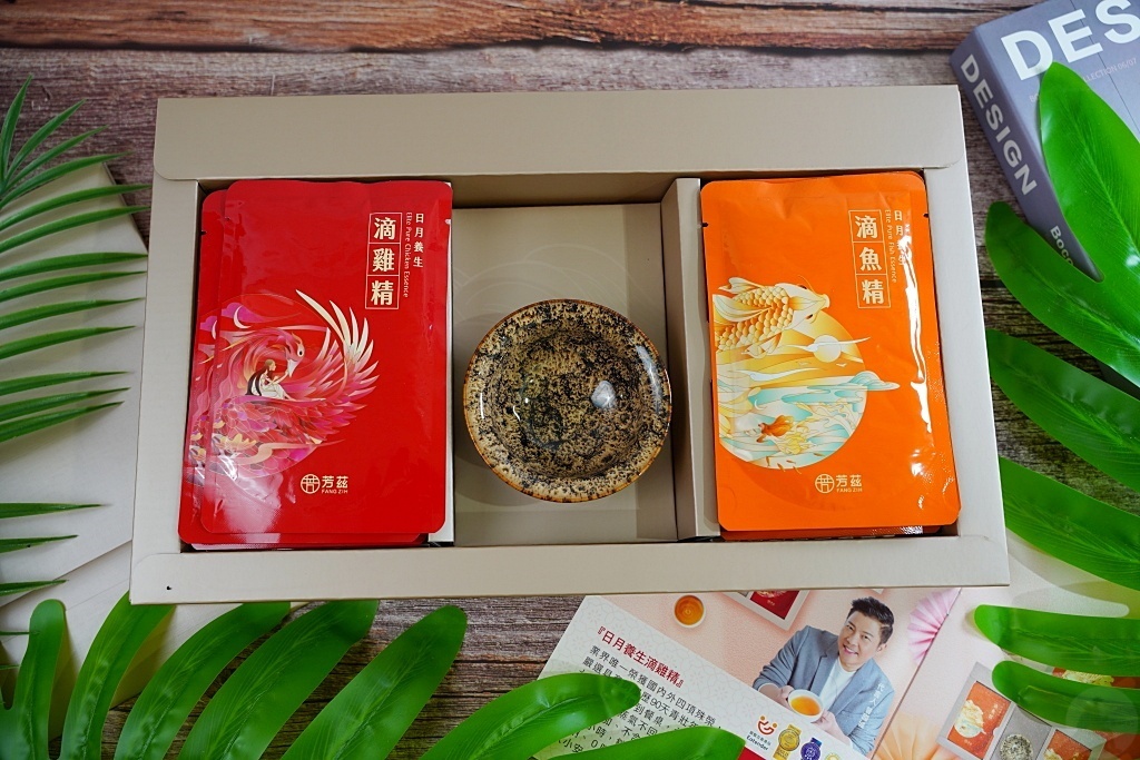 開箱啦!看看這「日月養生雞魚饗宴禮盒」,裡面有滴雞精5入、滴魚精5入,還有一個超漂亮的天目釉品茗杯!醬醬~真是美味和品味兼具的組合。快來一窺這豐富又精緻的內容,開始享受這場滋味的饗宴吧!