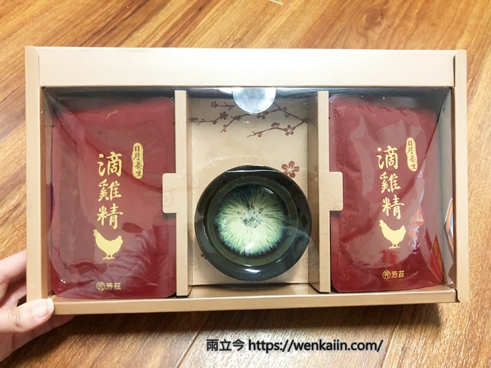 我來開箱給大家看一下,我這次入手的是日月養生滴雞精禮盒組,這組送禮真的完全超大方耶!有精美的提袋,6包滴雞精搭配一個精美的天目釉品茗杯,整個高級感破表,誰收到這樣的禮盒能不開心飛上天啦!?太棒了!