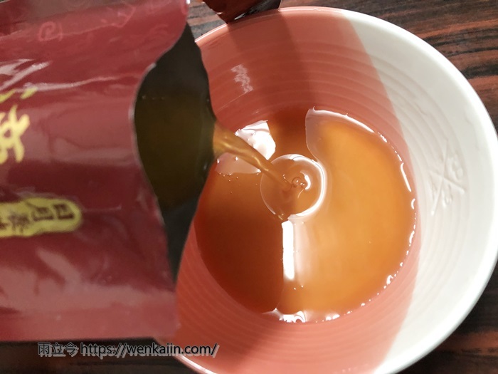 滴雞精加熱的方式很簡單,要整包拿出來隔水加熱(3-5分鐘)或是打開倒入碗中再電鍋加熱(5-8分鐘)都行,光用肉眼看就覺得日月養生滴雞精特別的濃純,香氣一直散發出來,讓人很想喝一口。