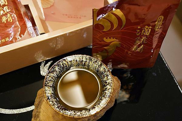 天目釉品茗杯非常有質感,容量剛剛好是一包滴雞精、滴魚精的份量