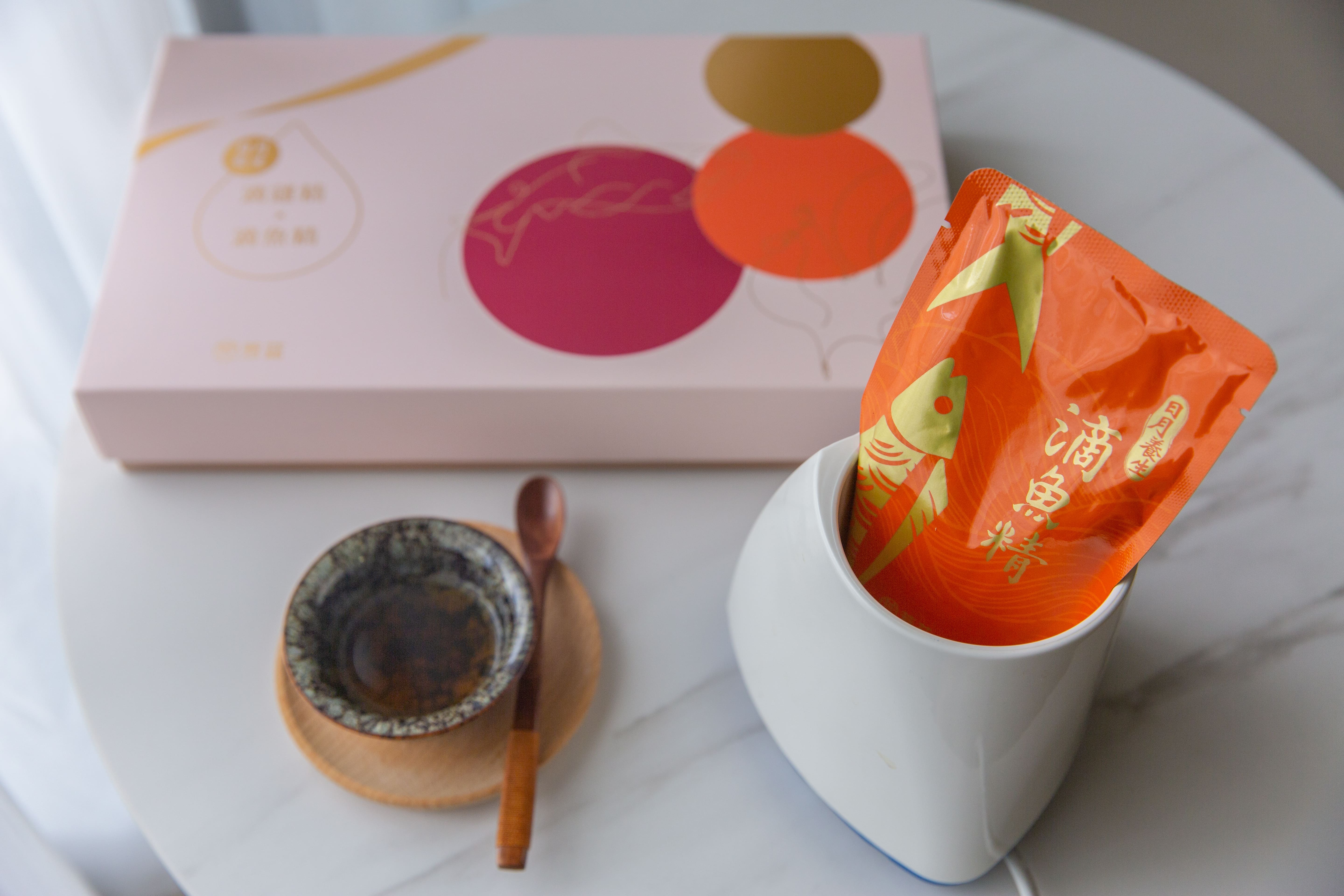 滴魚精的牛磺酸以及其他18種胺基酸提供滿滿的營養更能夠增強體力,讓米媽好精神,讓米媽有精力去應付高壓的工作,芳茲還另外加入深海軟骨素,讓滴魚精的營養更加完整。滴魚精倒出來時完全聞不出魚腥味,口感順口且濃醇而且完全不油膩,喝完還有一絲清甜。
