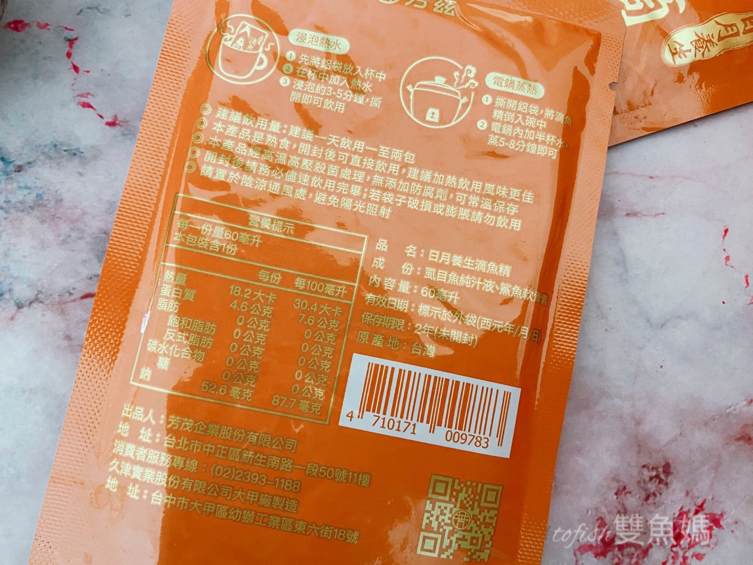 包裝也經過高溫高壓滅菌讓魚精裡面沒有殘留細菌,每一包滴魚精都使用4層不透光鋁袋包裝